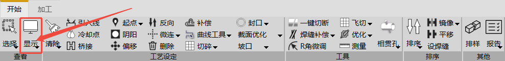 功能介绍:在零件上显示每段切割线的切割方向,如下图所示。