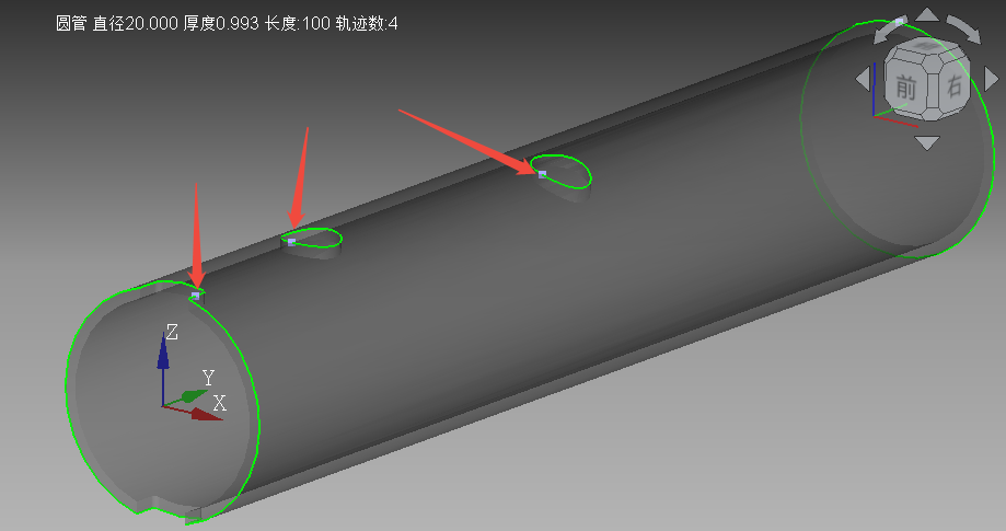 功能介绍:显示零件上切割线的切割向量,若只选中个别图形,那么法向量只显示被选中的图形。