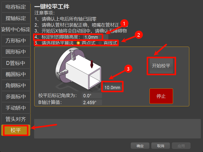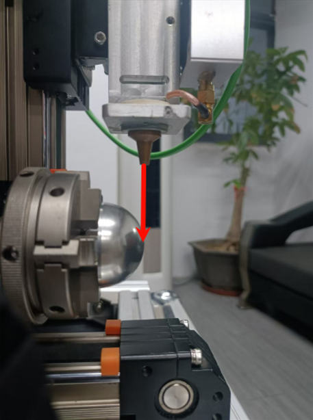 ③将激光头移动到工件(零件,管材)表面,红光刚刚好打在工件表面的位置上(此位置为“工件零位”)