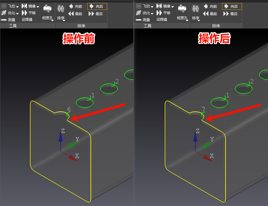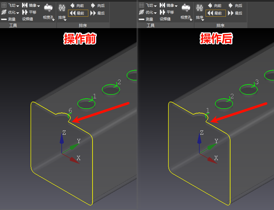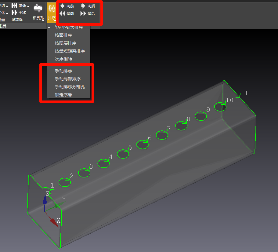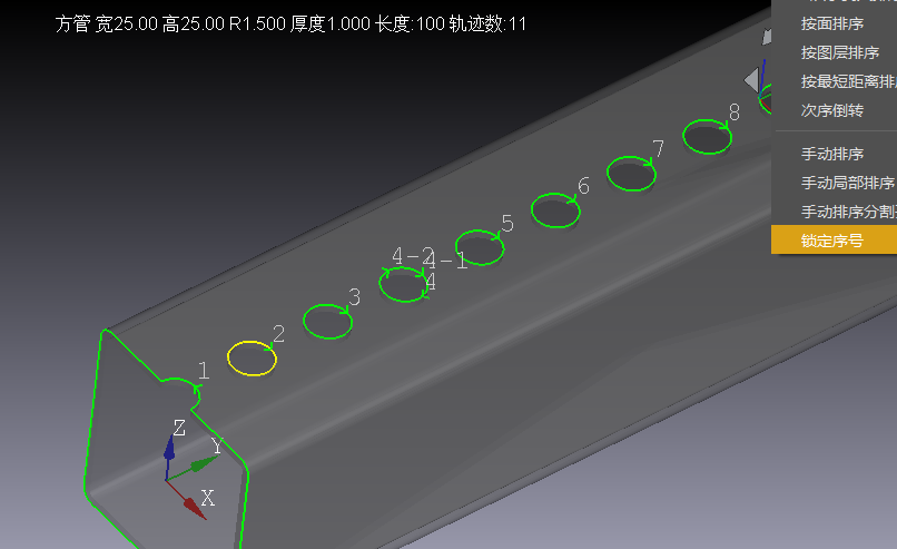 排序说明:此功能应用在一些切割线没有规律的排布,需要根据自己定义的切割顺序;