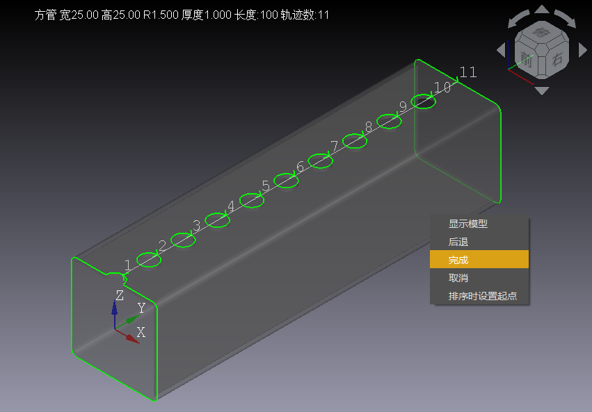 排序说明:选中一个零件中的某一部分切割线,单独进行排序。