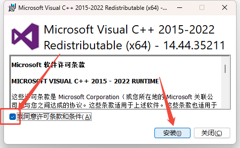 勾选《我同意许可条款和条件》,点击安装