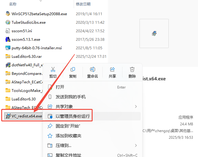 找到应用程序VC_redist.x64.exe,管理员权限打开,如下图所示:
