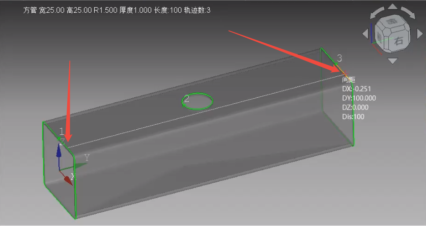操作步骤2:点击指定两个轨迹的切割线,系统自动计算两点之间各个距离。